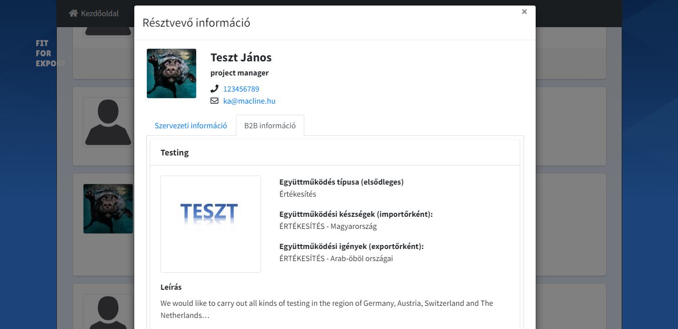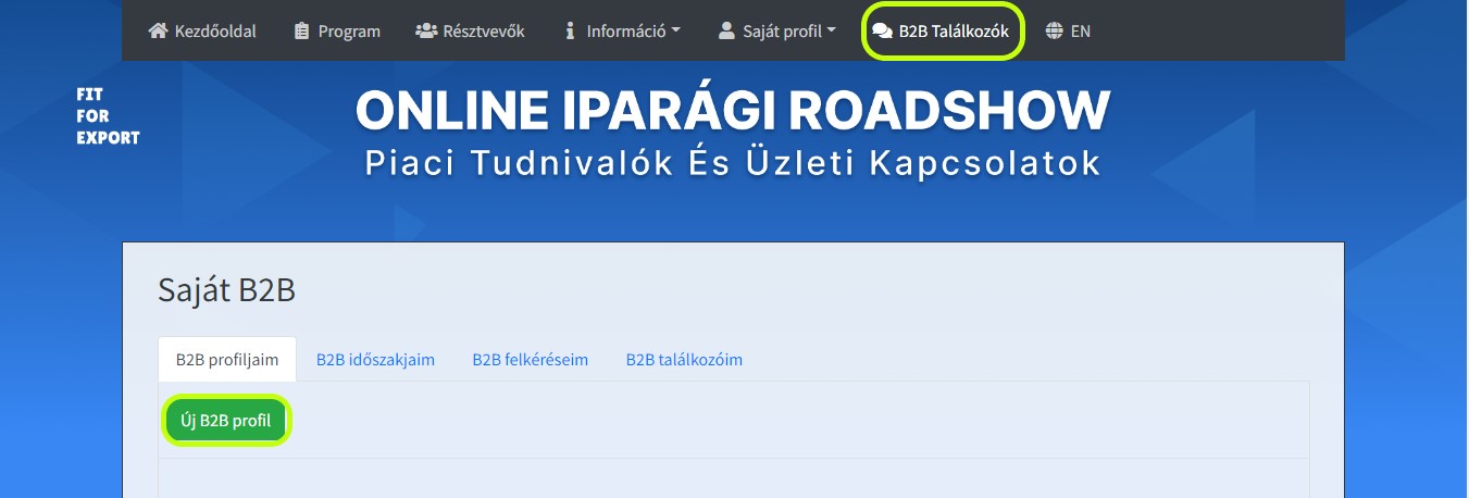 A B2B funkció szakmai résztvevő számára nem módosítható, hiszen a Fit For Export program célja B2B találkozók létrehozása.